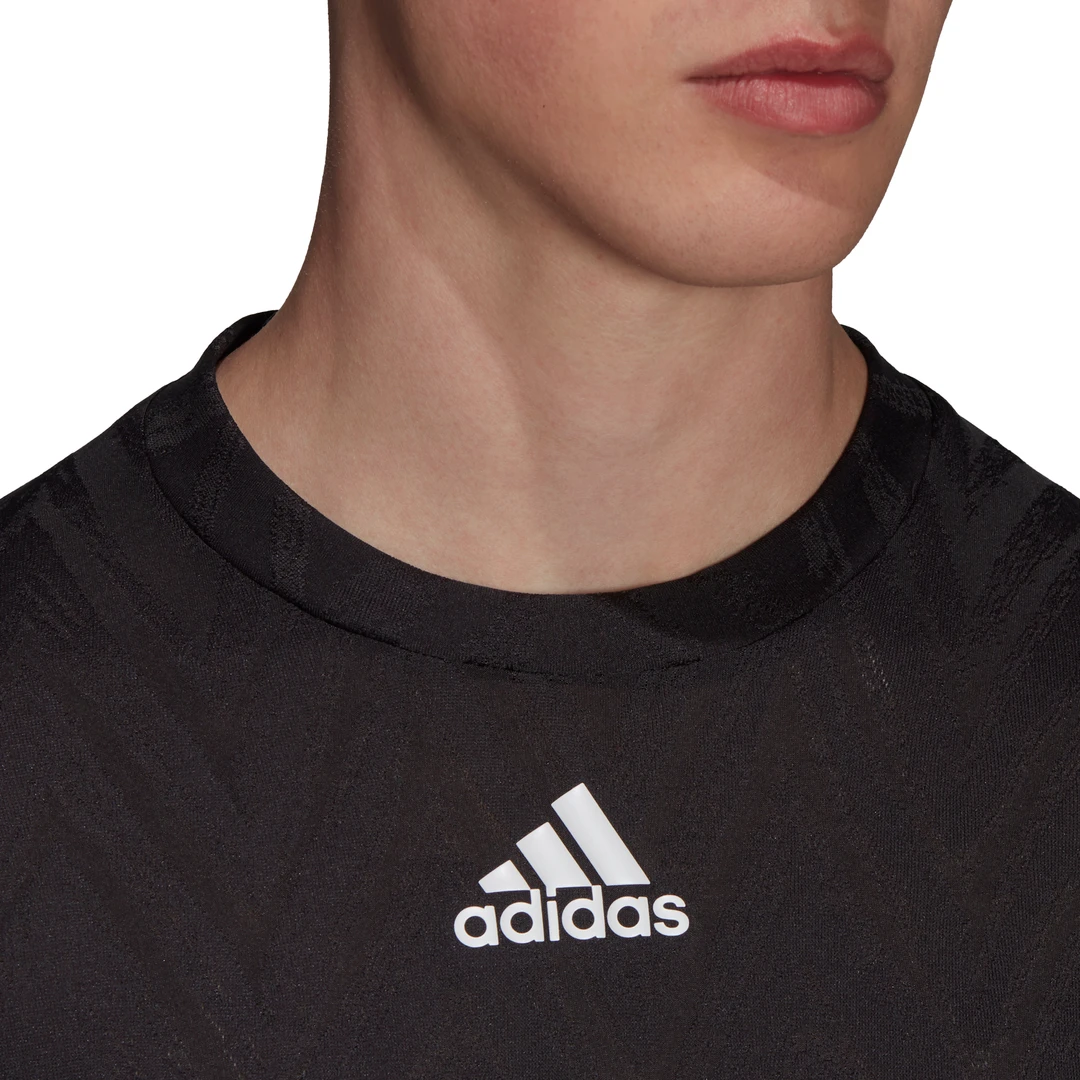 Celebrate the return of an icon. Inspired by the mighty Barricade’s outsole, a subtle herringbone design straddles the shoulders of this slim-fitting adidas t-shirt. Soft fabric and moisture-wicking Aeroready pair up to keep you dry and confident, and the motion-specific cut gives you room in the arms to dominate the court.
