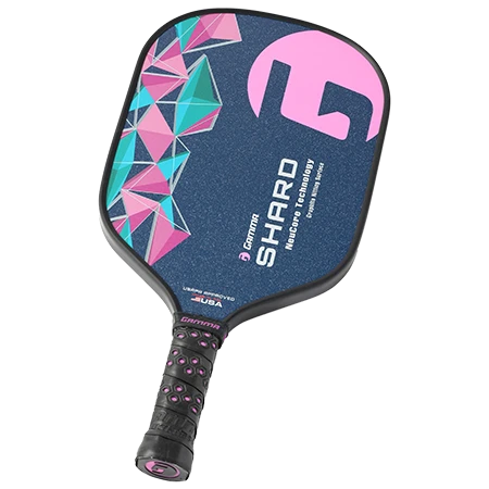 The Gamma Shard NeuCore pickleball paddle delivers a new soft touch while maintaining precision. The Shard features a graphite hitting surface for improved touch and a soft feel while giving you more dwell time at contact for greater levels of control. At its core, the Shard has NeuCore technology which utilizes drastically increases cell size and paddle core depth for enhanced responsiveness. As you come through contact this core also delivers better predictability so you can play with more confidence. Players looking for a traditionally shaped paddle that is maneuverable with a soft touch will love the Gamma Shard NewCore from all areas of the court.
