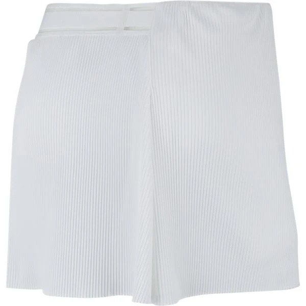 Don’t just look great but feel great on the court too. Nike Women’s Slam Skirt has an asymmetrical wrap design with uneven pleats. On the top left waist band features the Nike famous Swoosh logo design. For some added modesty, this skirt had shorts built in and a ball storage pocket.